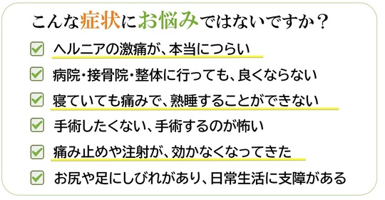 椎間板ヘルニアだけでは、痛みなどの症状が出ない場合もあります。また、半年程度でヘルニアが自然消滅する場合もあります。それは、免疫細胞が反応して、飛び出した髄核を食べてしまうからと考えられています。