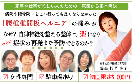 杉若さんに会った時、初めて苦しみ、辛さを分かってくれる人に出会えた気がしたのを覚えています。「どうしたら患者の痛さや苦しみを取り除けるのか」 そのことを親身になって考え、より良い治療方法を常に勉強してくれているのが分かります。患者として受け身だけではなく、自分でも気をつけなければいけないことは気をつけ、実践できることは実践するようにしています。元気になって、自分が活かされていることに感謝して前向きに生きていきたいと思っています。このように考えられるのは身体がしっかりしてきたからだなぁと思います。