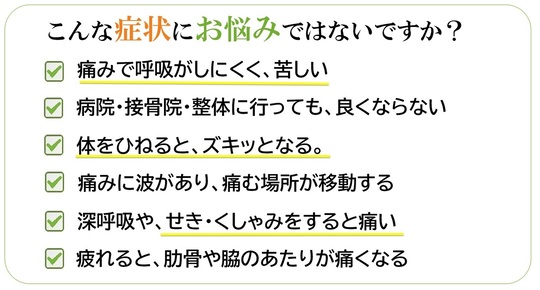 病気やけがなどはっきりした原因が無い場合の肋間神経痛です。