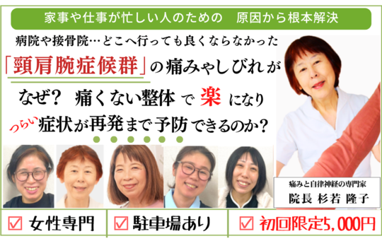 杉若さんに会った時、初めて苦しみ、辛さを分かってくれる人に出会えた気がしたのを覚えています。「どうしたら患者の痛さや苦しみを取り除けるのか」 そのことを親身になって考え、より良い治療方法を常に勉強してくれているのが分かります。患者として受け身だけではなく、自分でも気をつけなければいけないことは気をつけ、実践できることは実践するようにしています。元気になって、自分が活かされていることに感謝して前向きに生きていきたいと思っています。このように考えられるのは身体がしっかりしてきたからだなぁと思います。