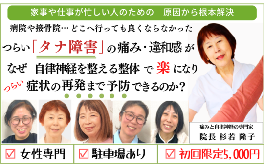 杉若さんに会った時、初めて苦しみ、辛さを分かってくれる人に出会えた気がしたのを覚えています。「どうしたら患者の痛さや苦しみを取り除けるのか」 そのことを親身になって考え、より良い治療方法を常に勉強してくれているのが分かります。患者として受け身だけではなく、自分でも気をつけなければいけないことは気をつけ、実践できることは実践するようにしています。元気になって、自分が活かされていることに感謝して前向きに生きていきたいと思っています。このように考えられるのは身体がしっかりしてきたからだなぁと思います。