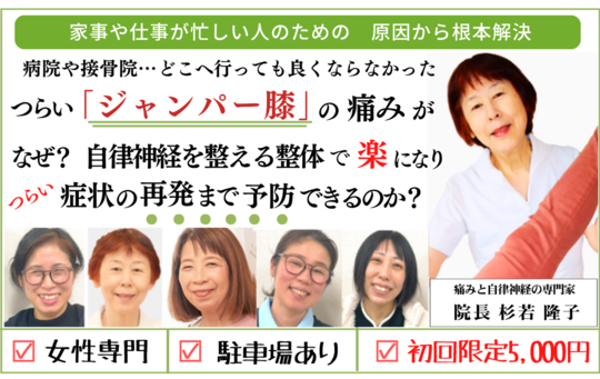 2014年9月、友人M宅を訪問中に体調不良となった私は、「友人が近くで治療院をやってるの。なんだか不思議な治療なんだけど凄く効くのよ!」と言うMに連れられて杉若先生の所へ。1時間以上丁寧に施術して戴いたら、噓のように頭痛と腹痛が取れ、身体が楽になったのです。が、何より驚いたのが、見事にO脚の私の膝と膝が、ぴったりくっつくようになっていたこと。次回伺った際そのことを告げると、先生は事も無げに、「骨の歪みを直したから…」と。以来、不調があると単発的に施術を受けてきました。