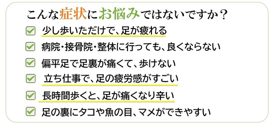 など様々な不調の原因になります。また足は体の土台です。頭痛・肩こり・腰痛など全身の症状にも影響してきます。