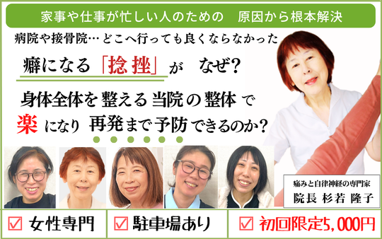 2014年9月、友人M宅を訪問中に体調不良となった私は、「友人が近くで治療院をやってるの。なんだか不思議な治療なんだけど凄く効くのよ!」と言うMに連れられて杉若先生の所へ。1時間以上丁寧に施術して戴いたら、噓のように頭痛と腹痛が取れ、身体が楽になったのです。が、何より驚いたのが、見事にO脚の私の膝と膝が、ぴったりくっつくようになっていたこと。次回伺った際そのことを告げると、先生は事も無げに、「骨の歪みを直したから…」と。以来、不調があると単発的に施術を受けてきました。