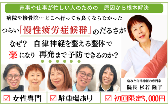 杉若さんに会った時、初めて苦しみ、辛さを分かってくれる人に出会えた気がしたのを覚えています。「どうしたら患者の痛さや苦しみを取り除けるのか」 そのことを親身になって考え、より良い治療方法を常に勉強してくれているのが分かります。患者として受け身だけではなく、自分でも気をつけなければいけないことは気をつけ、実践できることは実践するようにしています。元気になって、自分が活かされていることに感謝して前向きに生きていきたいと思っています。このように考えられるのは身体がしっかりしてきたからだなぁと思います。