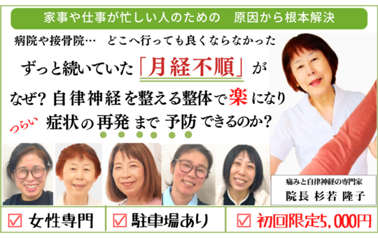 2014年9月、友人M宅を訪問中に体調不良となった私は、「友人が近くで治療院をやってるの。なんだか不思議な治療なんだけど凄く効くのよ!」と言うMに連れられて杉若先生の所へ。1時間以上丁寧に施術して戴いたら、噓のように頭痛と腹痛が取れ、身体が楽になったのです。が、何より驚いたのが、見事にO脚の私の膝と膝が、ぴったりくっつくようになっていたこと。次回伺った際そのことを告げると、先生は事も無げに、「骨の歪みを直したから…」と。以来、不調があると単発的に施術を受けてきました。